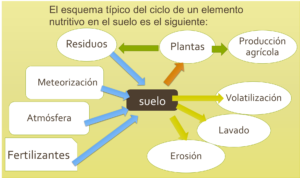 El esquema típico del ciclo de un elemento nutritivo en el suelo es el siguiente: